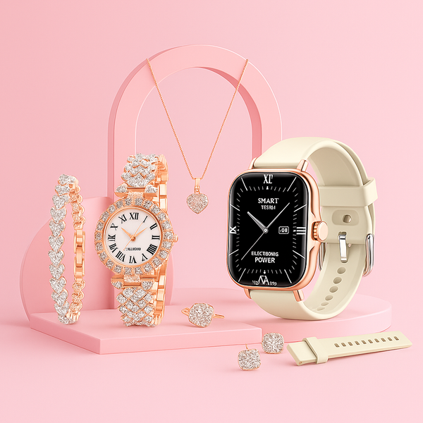 Glow Pack™ smartwatch A58 + reloj clásico + joyas.