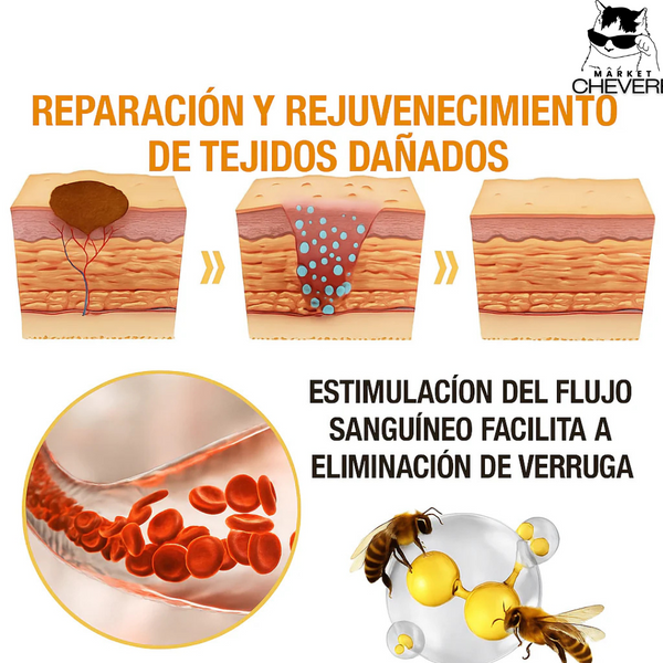 Imagina poder eliminar esas molestas verrugas sin dolor ni cicatrices. Nuestro spray con veneno de abeja actúa suavemente en la piel, asegurando que desaparezcan sin dejar rastro.